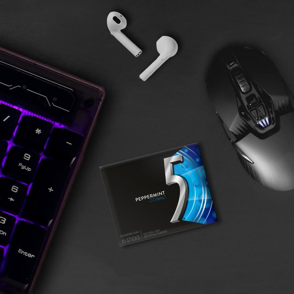 5 Gum Spearmint Rain Sugar Free Chewing Gum Bulk, 15 Stick Box (Pack of 10)(Peppermint Cobalt)