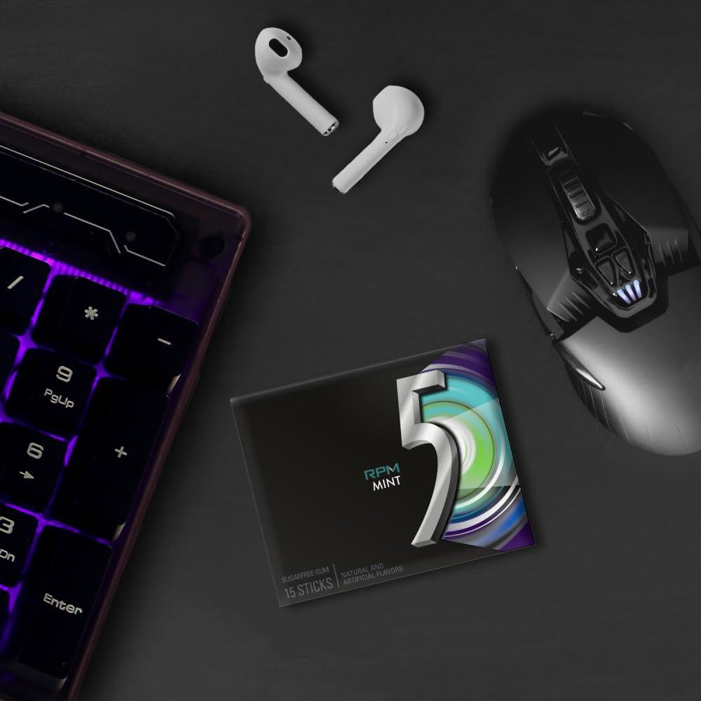 5 Gum Spearmint Rain Sugar Free Chewing Gum Bulk, 15 Stick Box (Pack of 10)(RPM Mint)
