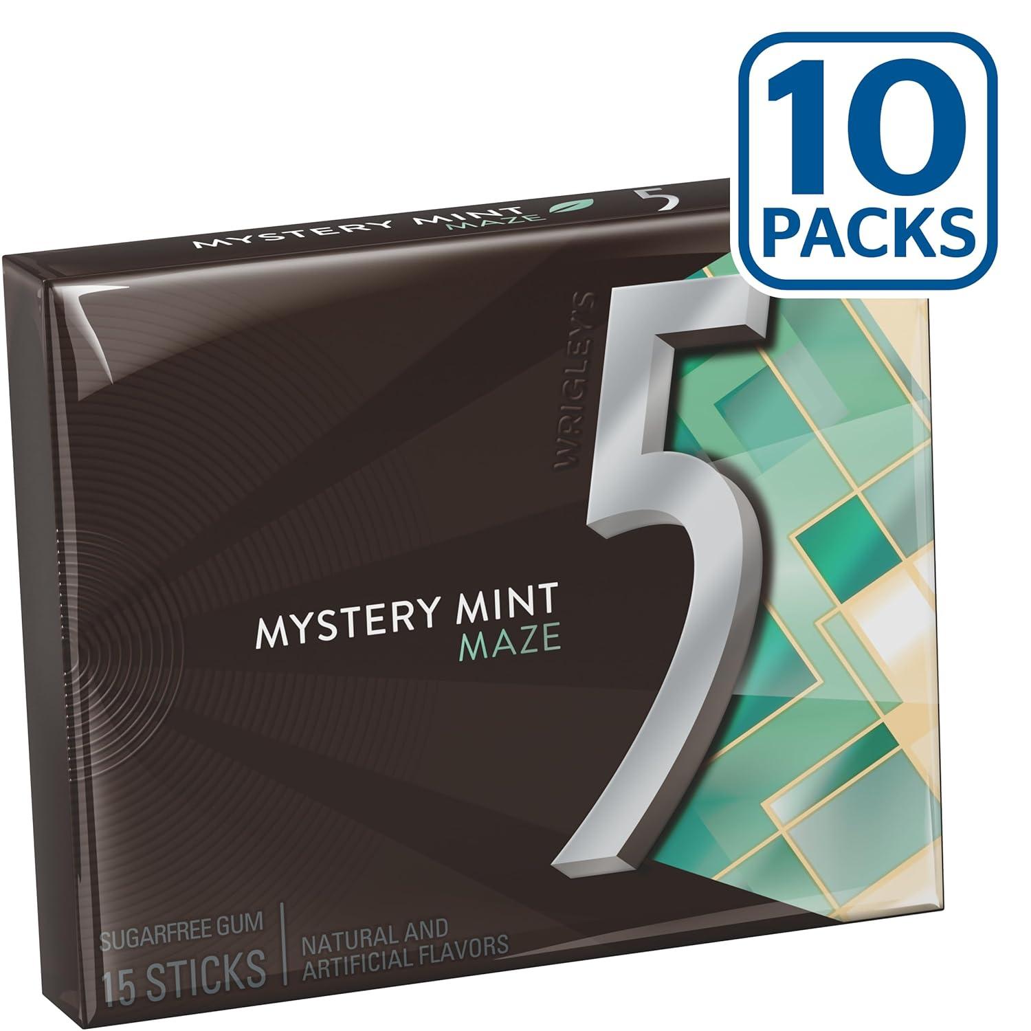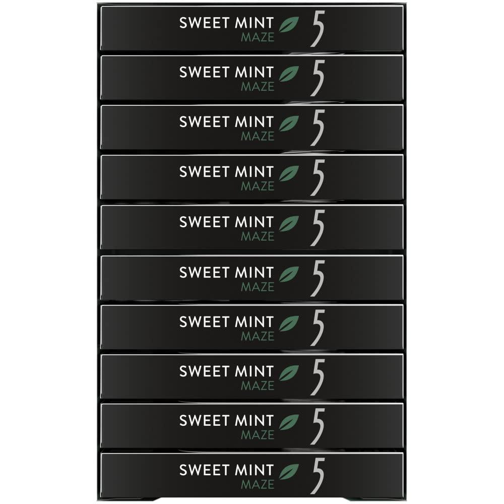 5 Gum Spearmint Rain Sugar Free Chewing Gum Bulk, 15 Stick Box (Pack of 10)(Sweet Mint Maze)