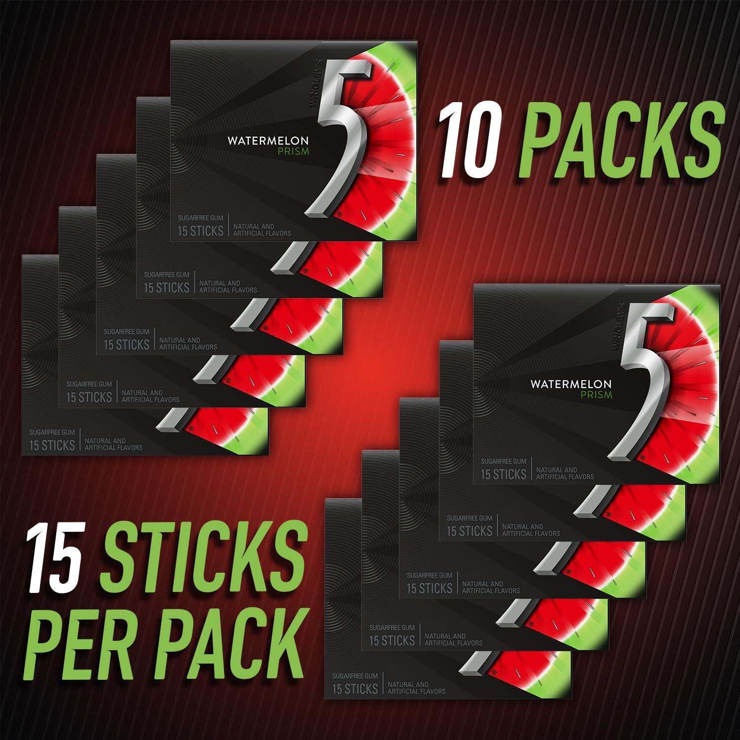 5 Gum Spearmint Rain Sugar Free Chewing Gum Bulk, 15 Stick Box (Pack of 10)(Watermelon Prism)
