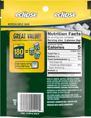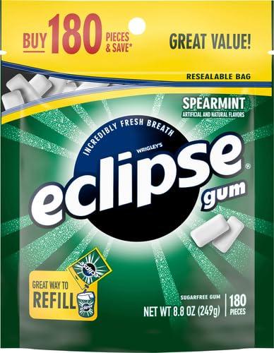 ECLIPSE Spearmint Chewing Gum Sugar Free, Mint Gum Bulk Pack, 8.8 Ounce (180 Piece Bag)(180 Count (Pack of 1))
