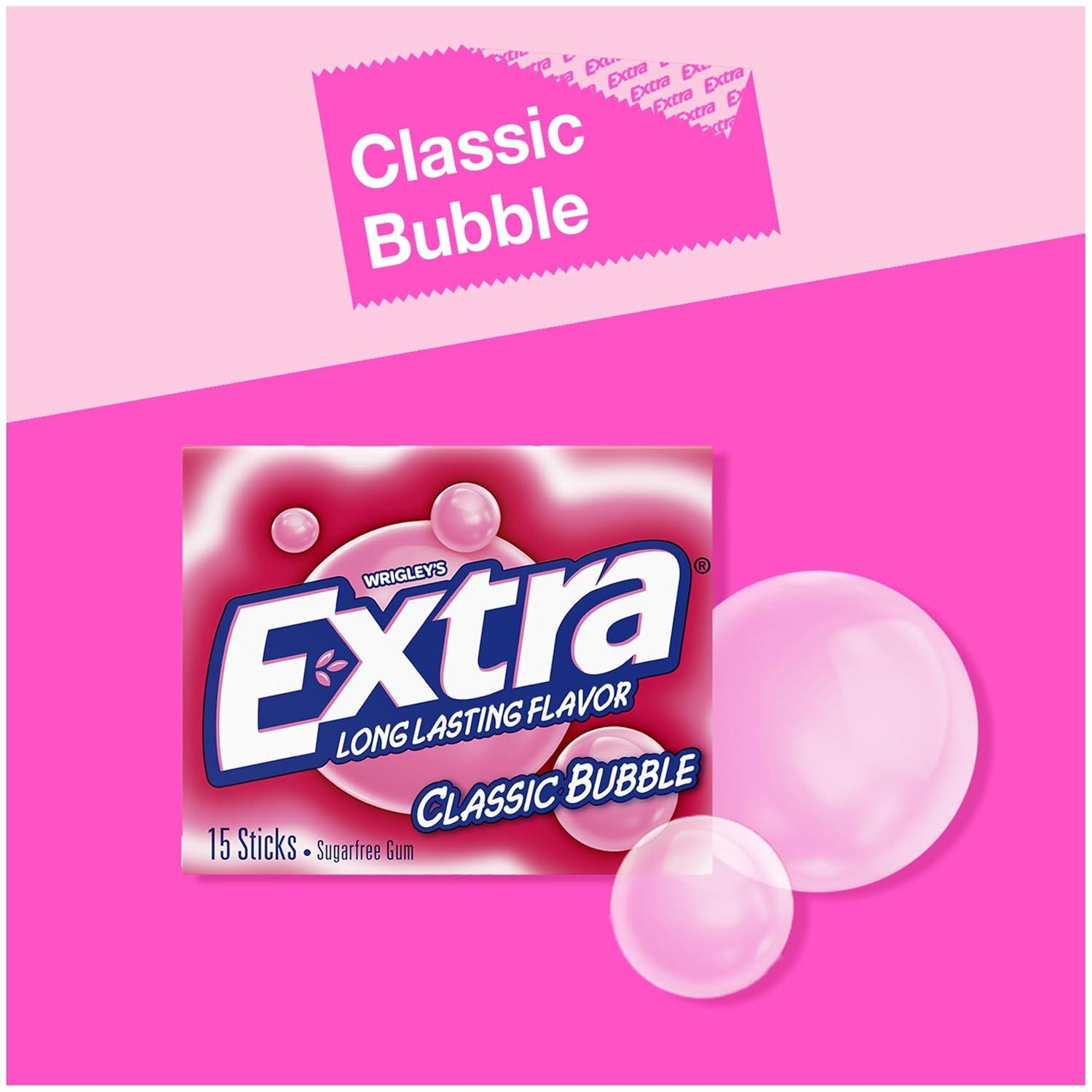 EXTRA Polar Ice Chewing Gum Packs, Sugar Free Gum in Bulk for Fresh Breath, 15 Sticks(Classic Bubble)