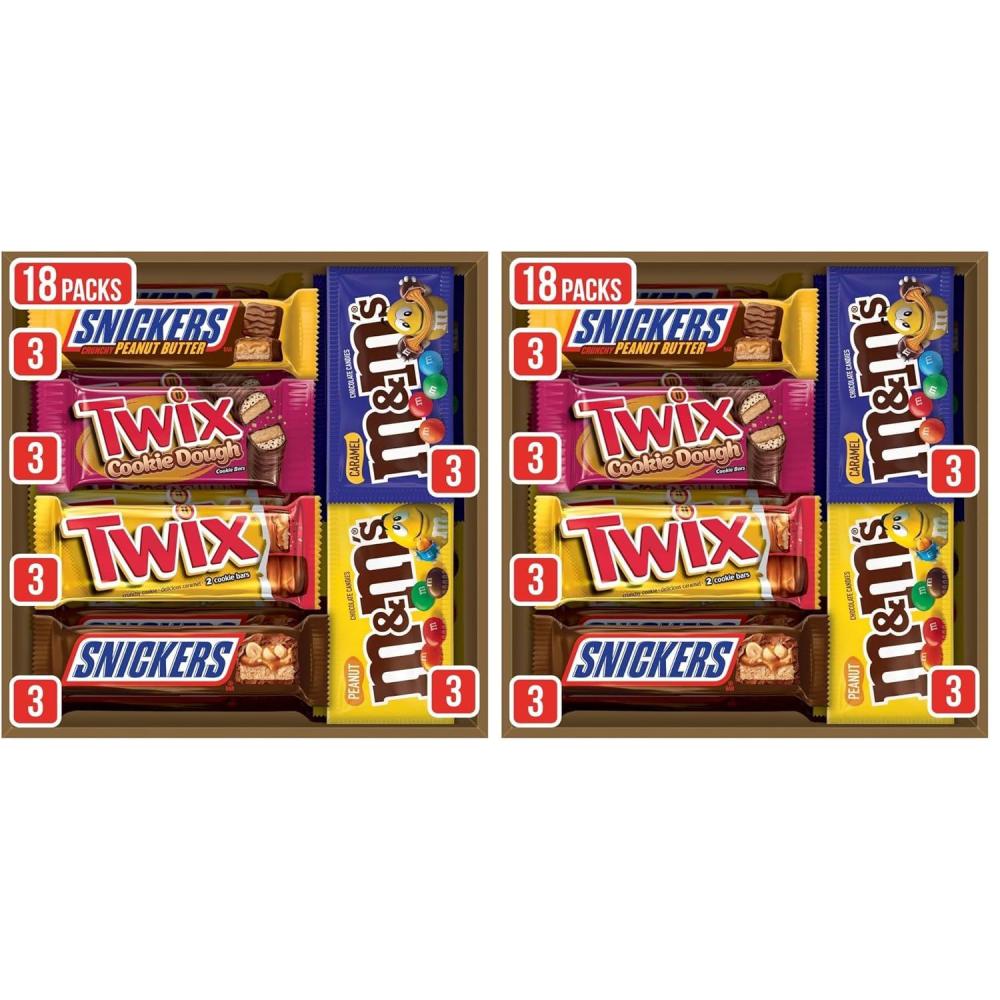 MARS M&M’S Peanut, M&M’S Caramel,SNICKERS Original,SNICKERS Peanut Butter Squared, TWIX Original and Cookie Dough Variety Pack Full Size Individually Wrapped Milk Chocolate Candy Bars,18 Ct(M&M’s Snickers & More)