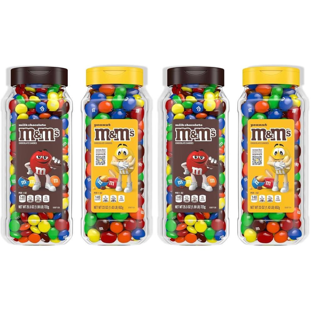 M&M’s Milk Chocolate and M&M’S Peanut Bulk Candy Jars, Assorted Chocolate Candies, Party Size Bulk Candy, Movie Night Snacks, Resealable and Recyclable, 48.5 Oz Total (Pack of 2)(Milk Chocolate and Peanut)